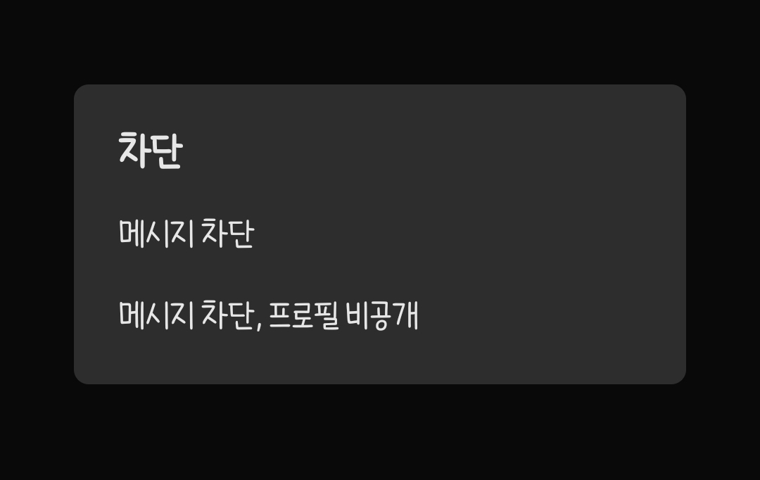 메시지만 차단할지 프로필도 비공개로 할지 선택할수있습니다. 프로필 공개도 싫다하시면 메시지 차단과 프로필 비공개로 차단하시면 되겠습니다.